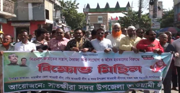 সাতক্ষীরায় আওয়ামীলীগের হরতাল বিরোধী মিছিল