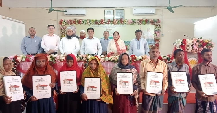 সাতক্ষীরা ভূমিহীন পরিবারকে ঘরের চাবী দলিল হস্তান্তরের মধ্য দিয়ে ভূমিহীন মুক্ত ঘোষণা