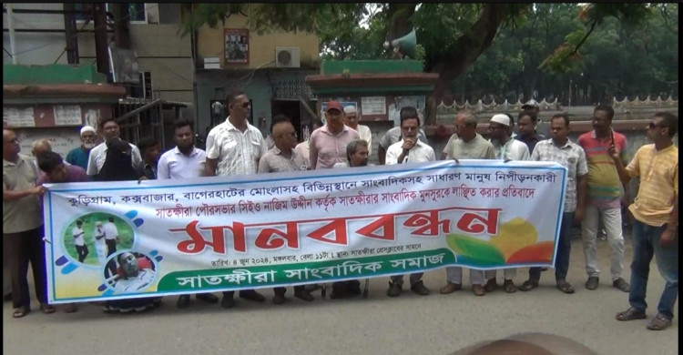সাতক্ষীরায় সাংবাদিককে লাঞ্চিত করার প্রতিবাদে মানববন্ধন