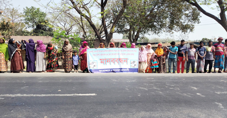 রাজশাহীর গোদাগাড়ীতে বাড়ি দখলের প্রতিবাদে মানববন্ধন