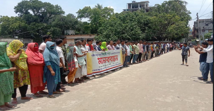 রাজশাহীতে শতবর্ষী পুকুর ভরাটের প্রতিবাদে মানববন্ধন
