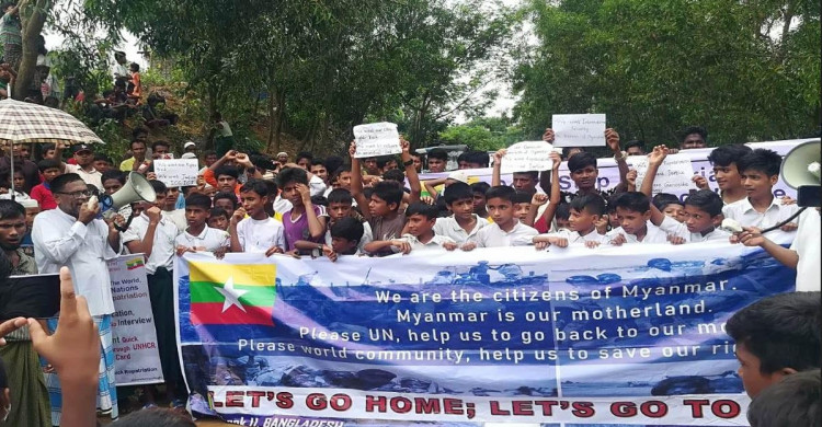 মিয়ানমার ফিরতে দ্রুত প্রত্যাবাসনের দাবিতে রোহিঙ্গাদের সমাবেশ
