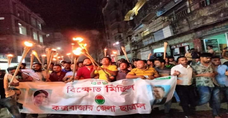 ছাত্রদল নেতা হত্যার প্রতিবাদে কক্সবাজারে মশাল মিছিল