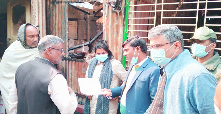 আগুনে পুড়ে যাওয়া চেয়ারম্যানের বাড়ি পরিদর্শনে ইউএনও