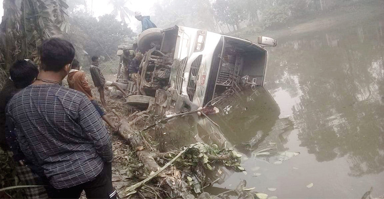টাঙ্গাইলে যাত্রী নিয়ে উল্টে পুকুরে হানিফ পরিবহনের বাস, আহত ২৫