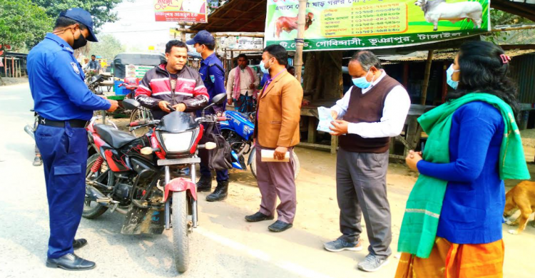 মাস্ক না পরায় টাঙ্গাইলে ১৪ পথচারীকে জরিমানা
