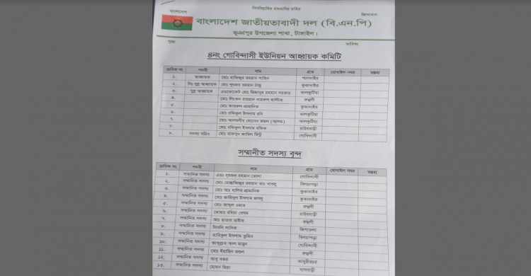 ভূঞাপুরে ৬ ইউনিয়ন বিএনপির কমিটি গঠন : আহ্বায়ক ও সদস্য সচিব হলেন যারা