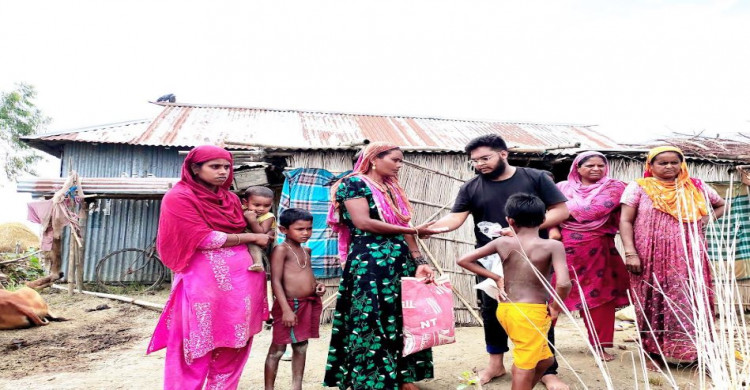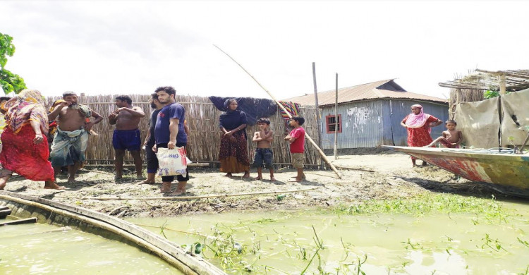 যমুনার চরাঞ্চলে বানভাসি মানুষদের পাশে দাঁড়ালেন কলেজশিক্ষার্থীরা
