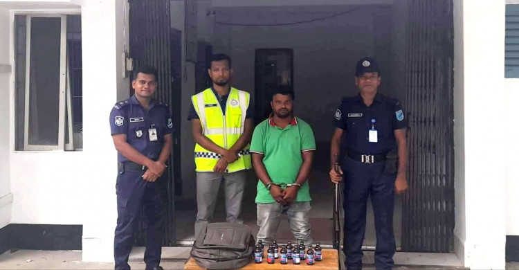 স্কুলব্যাগে মিলল ভারতীয় ফেনসিডিল, মাদক ব্যবসায়ী যুবক গ্রেপ্তার