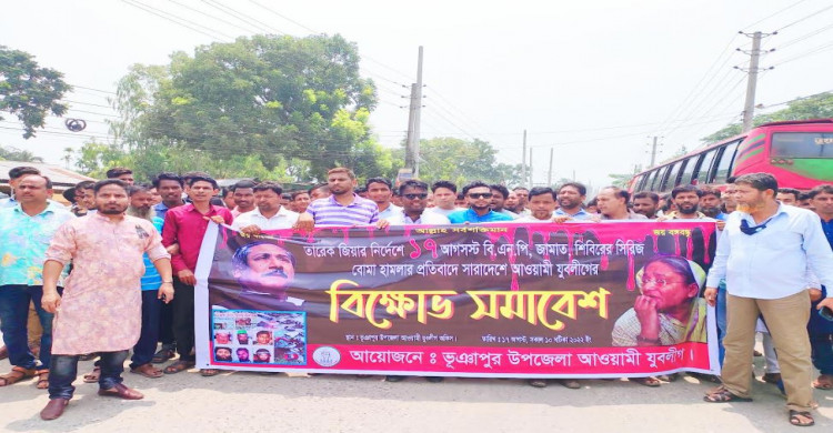 সিরিজ বোমা হামলার প্রতিবাদে ভূঞাপুরে যুবলীগ একাংশের বিক্ষোভ মিছিল