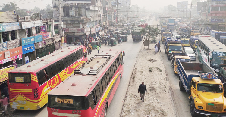 ঢাকা-বঙ্গবন্ধু সেতু মহাসড়কে দিনভর যানজট