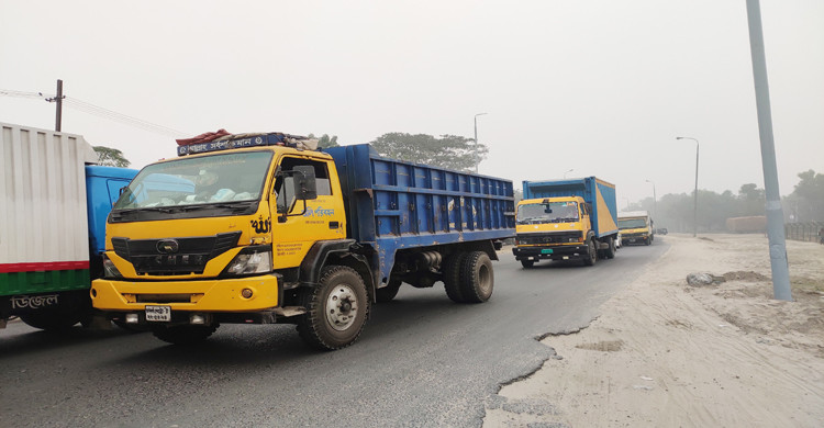 ঘনকুয়াশায় বঙ্গবন্ধু সেতু মহাসড়কে ভোগান্তি, স্বাভাবিক যানবাহন চলাচল ভোররাত থেকে বেড়ে যায় পণ্যবাহী পরিবহনের চাপ