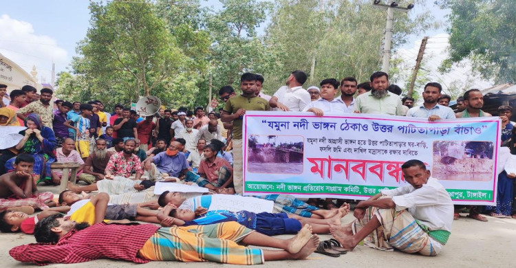 স্থায়ী বাঁধের দাবিতে বঙ্গবন্ধু সেতু পূর্ব-ভূঞাপুর আঞ্চলিক মহাসড়ক অবরোধ