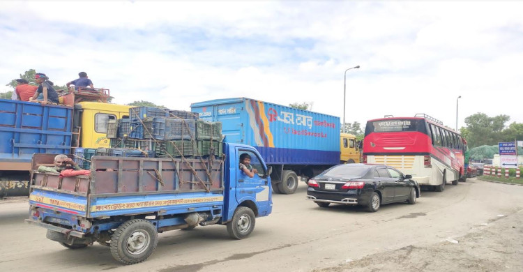 ঢাকা-বঙ্গবন্ধু সেতু মহাসড়কে যানজটে পরিবহন চলাচলে ধীরগতি