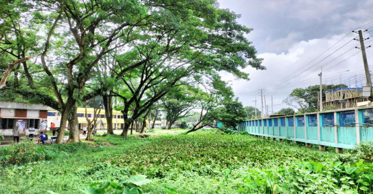কচুরিপানার দখলে ভূঞাপুর উপজেলা পরিষদ চত্বর ডোবা