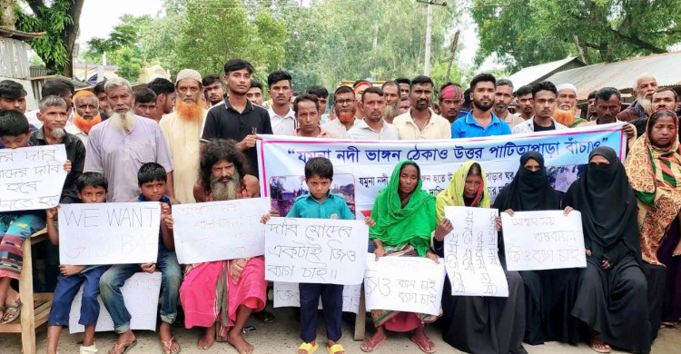 যমুনার ভাঙনরোধে বঙ্গবন্ধু সেতু-ভূঞাপুর সড়ক অবরোধ