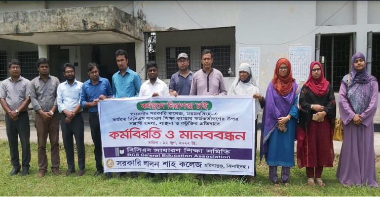 হরিণাকুণ্ডুতে বিসিএস শিক্ষা সমিতির মানববন্ধন