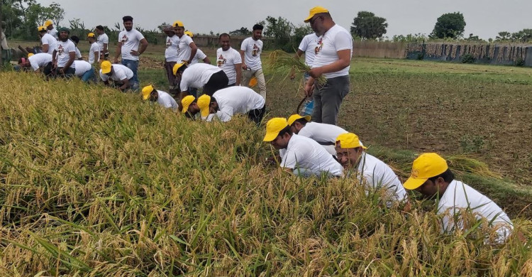 হরিণাকুণ্ডুতে কৃষকের ধান কেটে ঘরে তুলে দিল স্বেচ্ছাসেবক লীগ