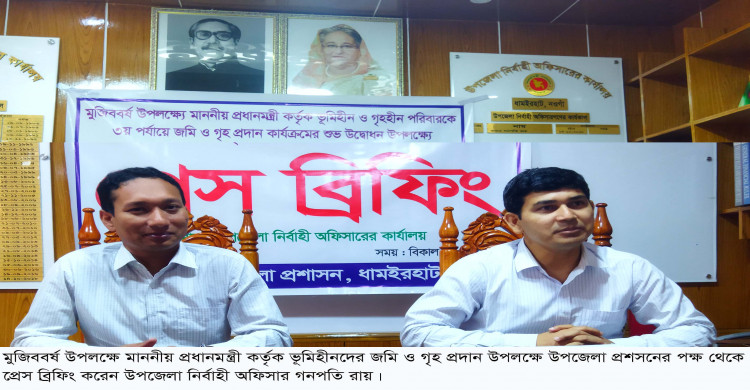 ধামইরহাটে ভূমিহীনদের জমি ও গৃহ প্রদান উপলক্ষে উপজেলা প্রশাসনের প্রেস ব্রিফিং