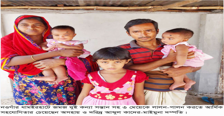 ধামইরহাটে যমজ দুই কন্যাসন্তানসহ ৩ মেয়েকে লালন-পালনে সহযোগিতা চান পিতা আব্দুল কাদের