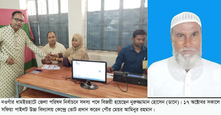 ধামইরহাটে জেলা পরিষদ নির্বাচনের ভোট যুদ্ধে হাড্ডাহাড্ডি লড়াইয়ে নুরুজ্জামান হোসেন বিজয়ী