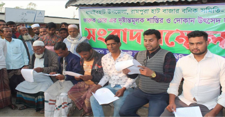 ধামইরহাটে চোরের দোকান উচ্ছেদের দাবীতে ব্যবসায়ীদের সংবাদ সম্মেলন