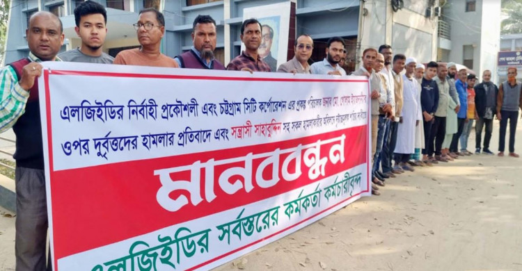 চট্টগ্রামে এলজিইডির নির্বাহী প্রকৌশলী ও প্রকল্প পরিচালকের উপর হামলার প্রতিবাদে মানববন্ধন