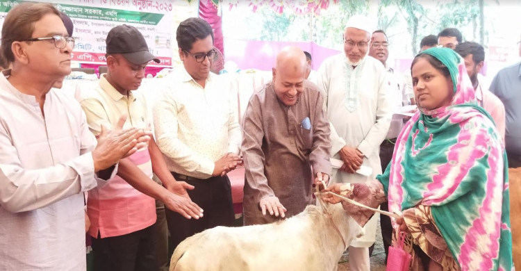 ধামইরহাটে দরিদ্রদের মাঝে বকনা বাছুর ও শিশুদের মাঝে শিক্ষা উপকরণ বিতরণ