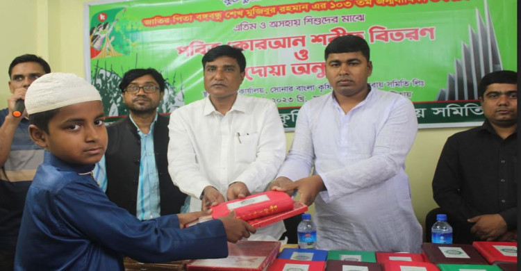 ধামইরহাটে বঙ্গবন্ধুর জন্মদিন উপলক্ষে এতিম ও অসহায় শিশুদের মাঝে কোরআন শরীফ বিতরণ