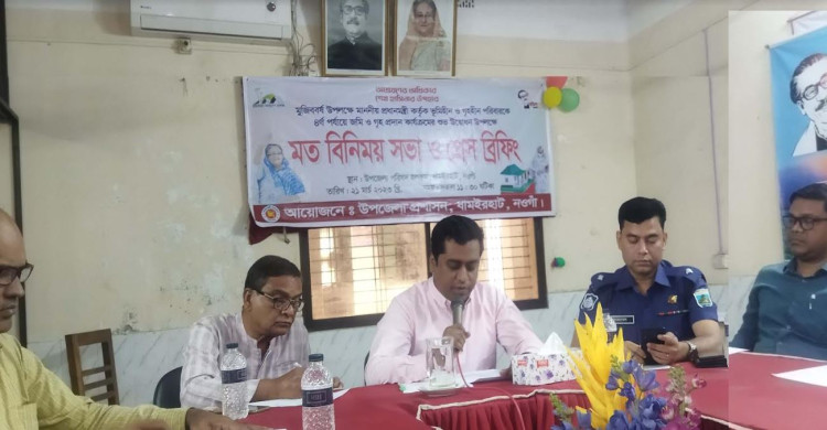 ধামইরহাটে উপজেলা প্রশাসনের উদ্যোগে ভূমি ও গৃহহীনদের জমি ও গৃহ প্রদান বিষয়ে মতবিনিময় ও প্রেস ব্রিফিং