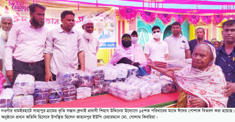 ধামইরহাটে দেড় হাজার পরিবারে ঈদের পোশাক বিতরণ করলেন প্রবাসী শিহাব উদ্দিন