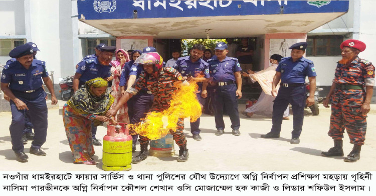 ধামইরহাটে ফায়ার সার্ভিস ও থানা পুলিশের যৌথ উদ্যোগে অগ্নি নির্বাপন প্রশিক্ষন মহড়া