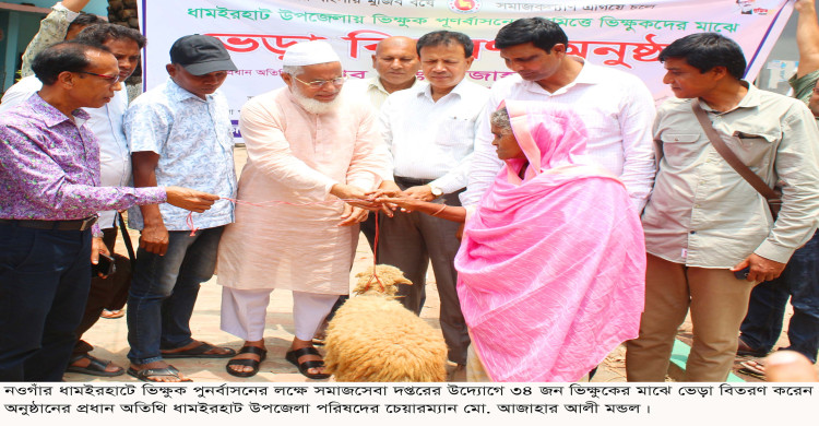 ধামইরহাটে সমাজসেবা দপ্তরের উদ্যোগে ৩৪ জন ভিক্ষুকের মাঝে ভেড়া বিতরণ