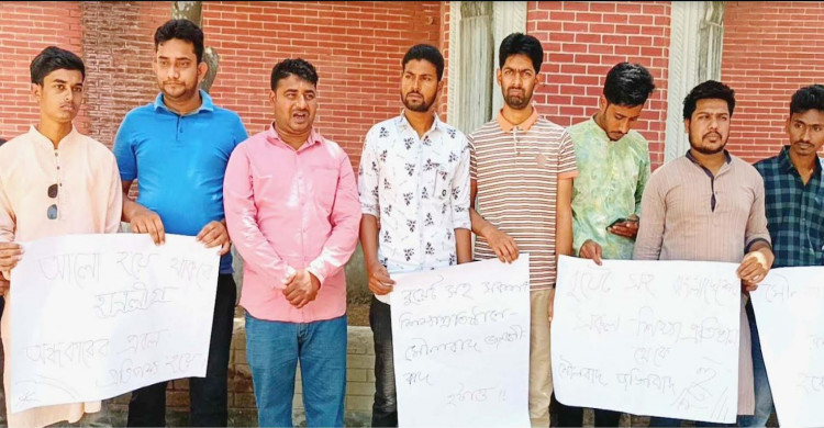 ধামইরহাটে সরকারি এম এম কলেজ ছাত্রলীগের মানববন্ধন