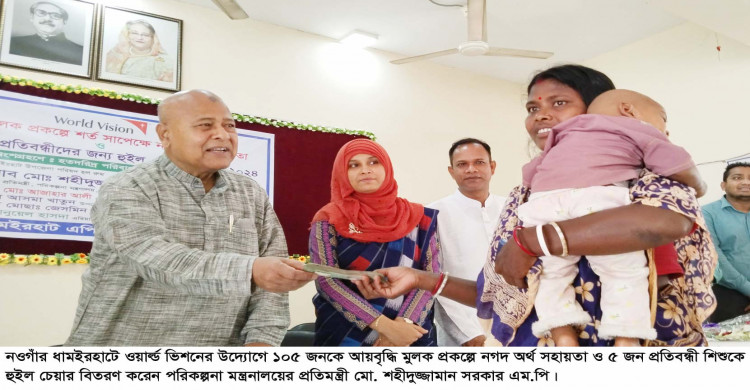 ধামইরহাটে ওয়ার্ল্ড ভিশনের উদ্যোগে হতদরিদ্রদের মাঝে নগদ অর্থ ও হুইল চেয়ার বিতরণ