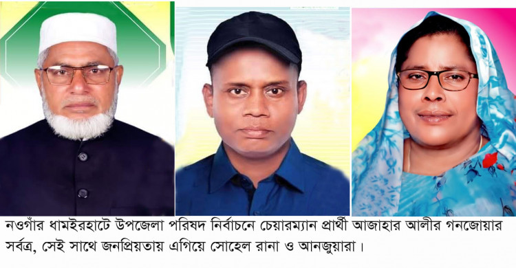 ধামইরহাটে চেয়ারম্যান প্রার্থী আজাহার আলী’র গনজোয়ার, বিজয়ের পথে জনপ্রিয় সোহেল রানা ও আনজুয়ারা
