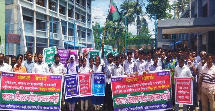 ধামইরহাটে বৈষম্য বিরোধী ছাত্র জনতা বিক্ষোভ মিছিল প্রধান শিক্ষকের পদত্যাগ দাবী