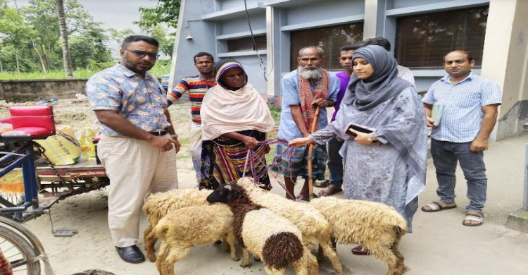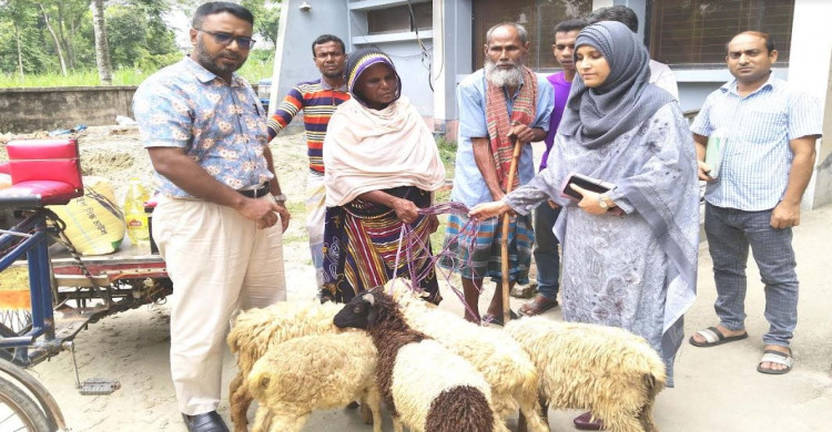 ধামইরহাটে ভিক্ষুককে ভেড়া বিতরণ