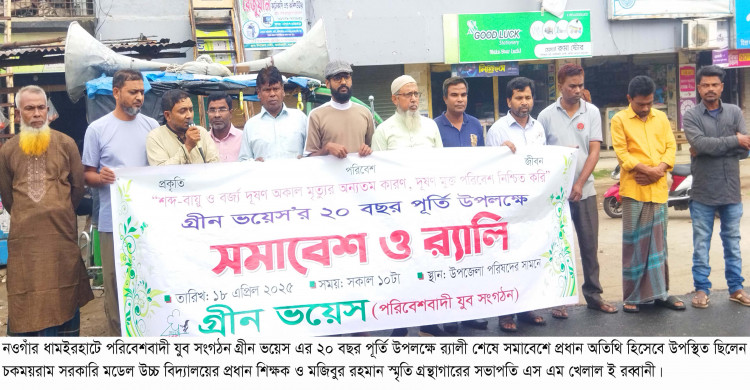 ধামইরহাটে গ্রীণ ভয়েসের ২০ বছর পূর্তি উপলক্ষে র্যালী ও সমাবেশ অনুষ্ঠিত