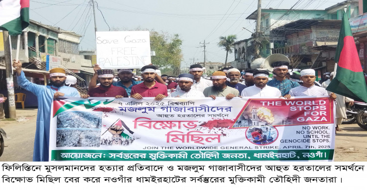 ধামইরহাটে গাজায় বর্বোরচিত হামলার প্রতিবাদে বিক্ষোভ মিছিল