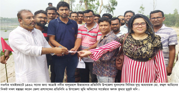 ধামইরহাটে রেকর্ড পরিমান রাজস্ব আদায়ে বালুমহাল ইজারা-আনুষ্ঠানিক ভাবে দখল হস্তান্তর
