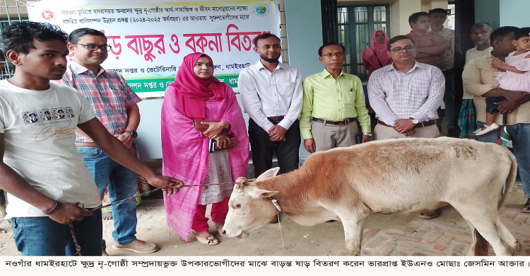 ধামইরহাটে ক্ষুদ্র নৃ-গোষ্ঠির মাঝে ষাঁড় বিতরণ
