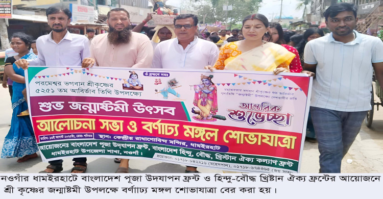 ধামইরহাটে শ্রীকৃষ্ণের জন্মাষ্টমী উপলক্ষে বর্ণাঢ্য মঙ্গল শোভাযাত্রা