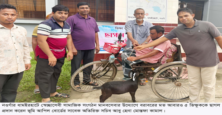 ধামইরহাটে সামাজিক সংগঠন মানবসেবা কর্তৃক ৫ ভিক্ষুকদের ছাগল প্রদান