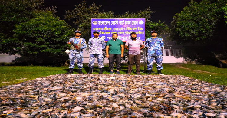 চাঁদপুরে কোস্টগার্ডের অভিযানে ১১ শ' কেজি চিংড়ি জব্দ