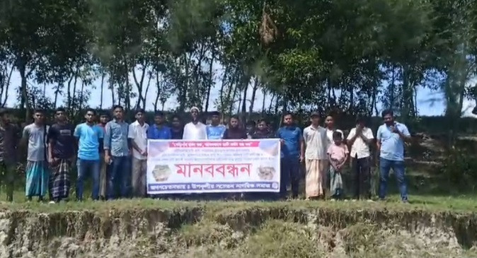 বাঁশখালীতে অবৈধভাবে মাটি কাটার প্রতিবাদে মানববন্ধন