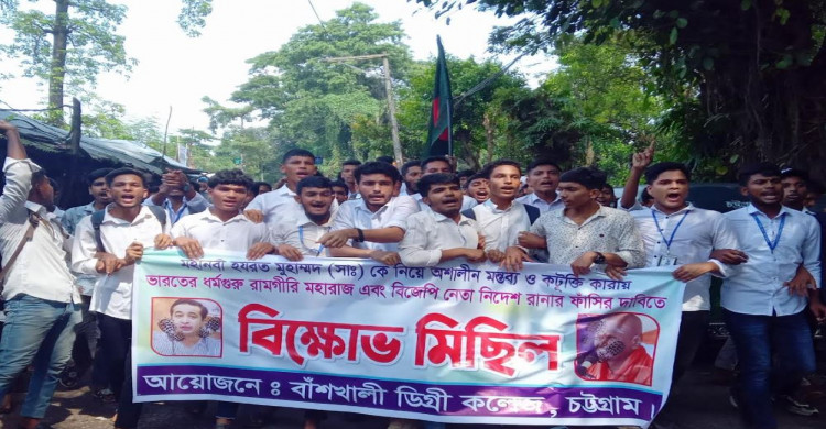 রাসুল (সাঃ)কে নিয়ে ভারতে কটুক্তির প্রতিবাদে বাঁশখালীতে ছাত্রদের বিক্ষোভ