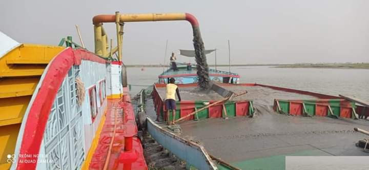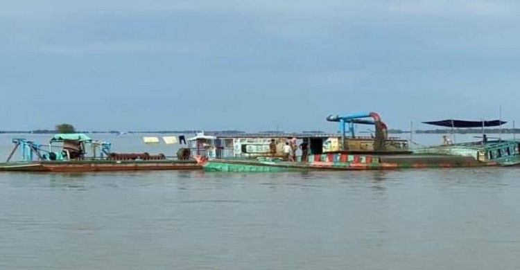 খালিয়াজুরীতে ধনু নদে অবৈধভাবে বালু উত্তোলন যেন থামছেই না