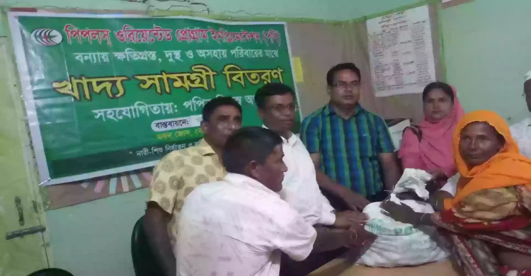 খালিয়াজুরীতে বেসরকারি সংস্থা পপির খাদ্যসামগ্রী বিতরণ