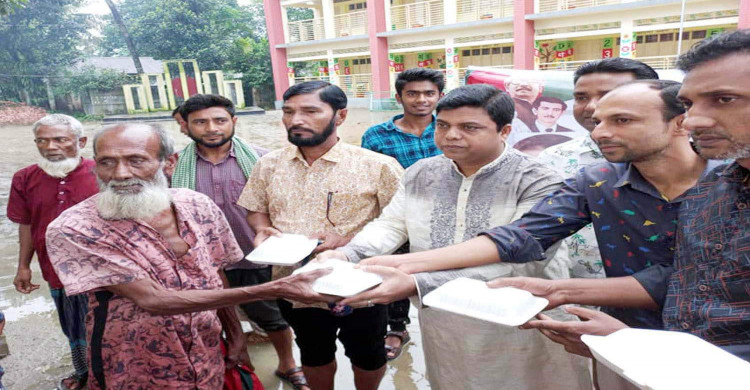 ধর্মপাশায় অ্যাড. গোলাম কিবরিয়ার উদ্যোগে বন্যার্তদের মাঝে খাবার বিতরণ